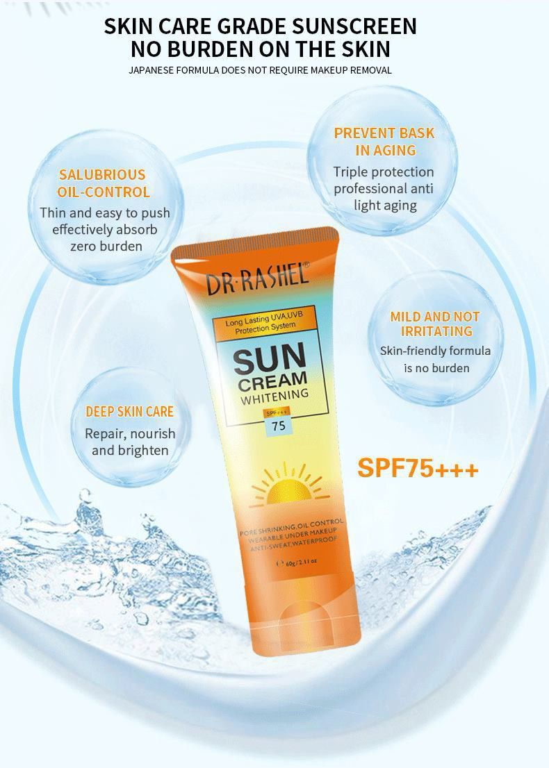 Don’t settle for ordinary sun creams. Choose Dr. Rashel Sun Cream for unparalleled skin protection and care, leaving your skin healthier, smoother, and glowing with confidence.